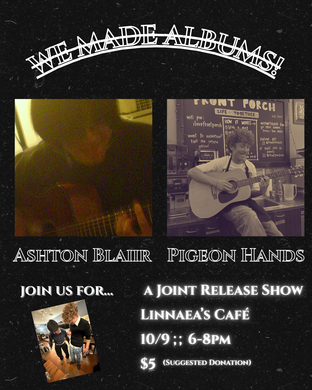 We've got some great shows coming up, including a dual album release show with Ashton Blaiir and Pigeon Hands!